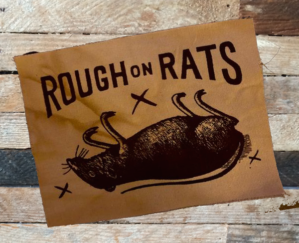 Screen printed in black ink on tea dyed cotton fabric, approximately 6" x 4".  Also available in red cotton printed with black ink and black cotton printed with discharge (all three...